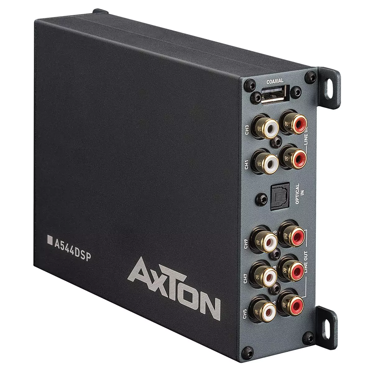 AXTON A544DSP: 4-Kanal Verstärker mit 10 DSP-Kanälen und 6 Preouts, optischer Eingang, optischer Ausgang, Endstufe verlinkbar, ausgestattet mit Handy App-Steuerung, Bluetooth Audiostreaming, Hi-Res Audio optional